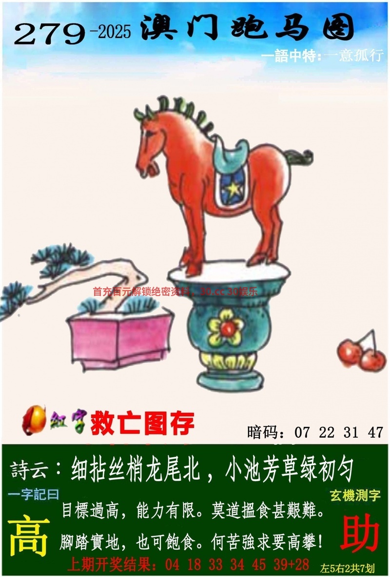 280期 | 马鼠鸡猴 | 开:鼠42 |